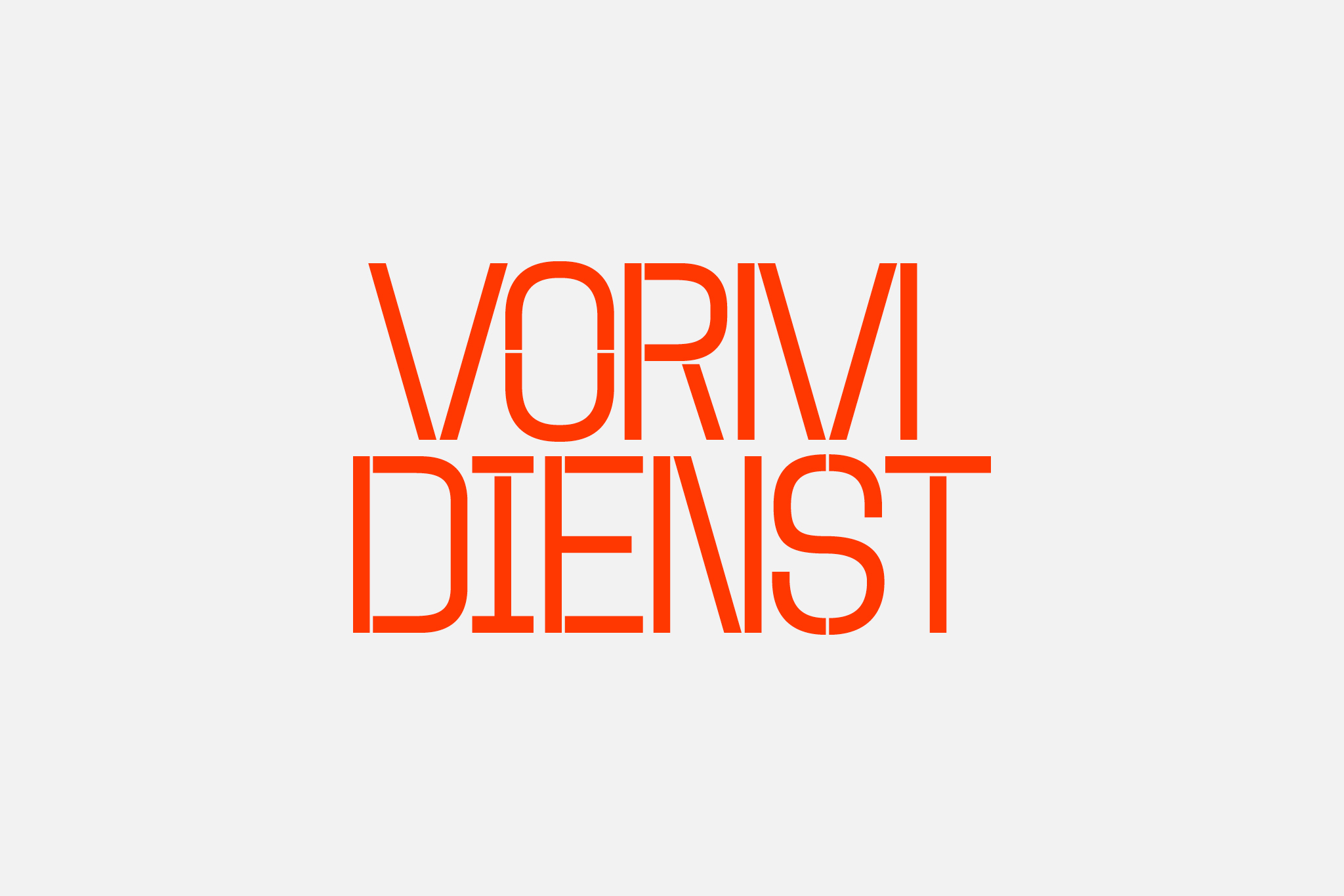 Bespoke logotype and branding consultancy for Vormdienst, a creative agency with a clear hands-on approach. Event production, design, implementation. Vormdienst is at your service.